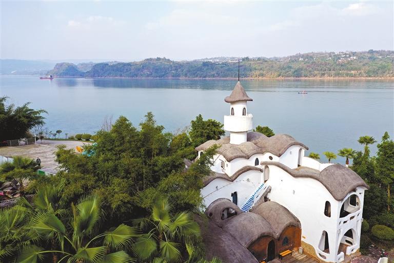 长江与梨香溪交汇处,冬日的小镇宛如立体画卷:彩色酒店以欧式城堡为蓝本,五彩积木般的建筑倒映在碧波之上,与岸边苍翠林木相映成趣,成为长江畔最亮眼的地标。